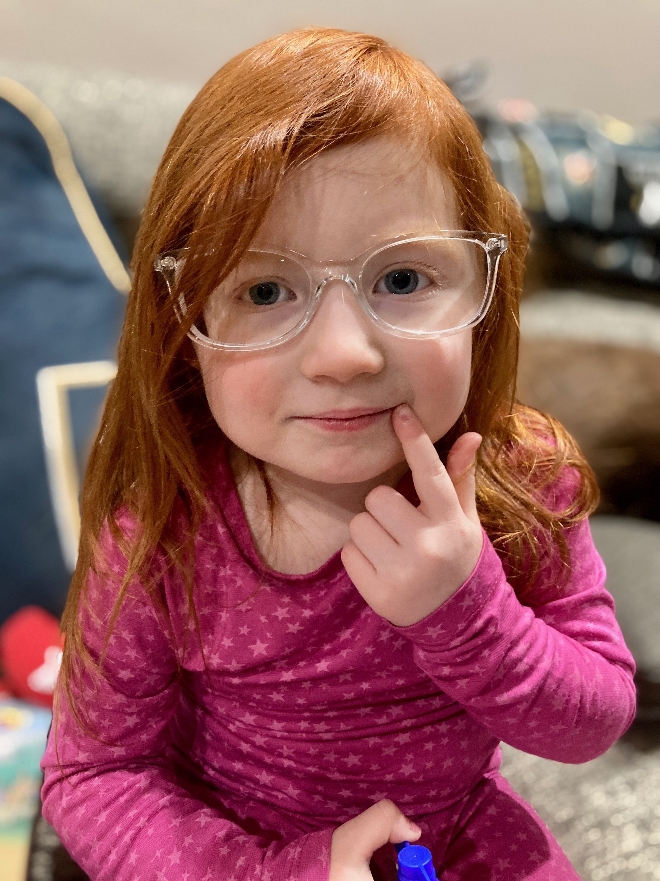 Ella enjoys games; especially the NYT Wordle, Strands, and Tiles. She regularly requests that we have ‘silly time,’ play tag, or Uno. If given the choice, she would stay at home in her PJs all weekend. She’ll oftentimes spell words that make a word backwards; for example, she’ll say, “P-O-O-L spells LOOP backwards.” Her ability to do this is quite impressive; like she’s always thinking of another word that it will work with. She knows it’s important to exercise and eat healthfully, but she will request a treat nearly every day after dinner. She eats most foods put in front of her, but her favorites are: pancakes, cheese its, ice cream, edamame beans, strawberries, and nutella. Her favorite dinners are: fish and rice, tacos, sloppy joes, and most soups.